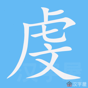 虔,金文=(虎头,借代虎)+(文,纹案),表示虎纹。造字本义:令人畏惧的虎纹。篆文承续金文字形。
