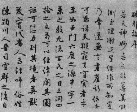 【简介】:  淸·汪士鋐书。纸本。行书。凡六十行,书于康熙五十八年(1719)。31×217.5cm。上海博物馆藏。刊于日本《中国明淸书法名品图册》。 【赏析】: 此卷小行书,虽是书写虞世南《破邪论序》,但汪士鋐此卷,则并非临习之作,其用笔均出自己意。卷后有光緖年间书家杨靖和崔绳祖的题跋。杨靖题曰:“退谷先生以枯渴之笔,写淸腴之字,乱头粗服,不以修饰爲容者也。”崔绳祖题曰:“此卷行书。初观似不经意,谛审乃一宗《圣敎》笔意。殆所谓雅有门庭,亦佳品乎。”两人的题跋似乎把我们引进一个矛盾的世界,一方面是顺乎自然的“乱头粗服”和“不经意”,另一方面却表现出“淸腴”和古雅的趣味。这看似对立的二者在汪士鋐的笔下却通过枯渴之笔达到了统一,并使人们感受到一种“书卷气”迎面扑来。对于今人来说,这也许是很难达到的境界吧。 |