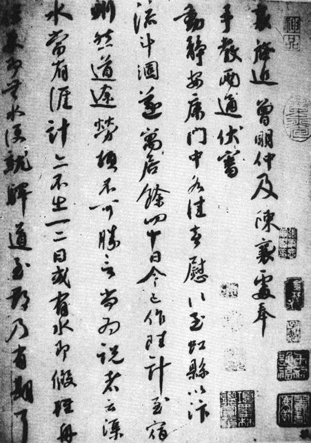 【简介】: 宋·蔡襄书。纸本。行书。尺牍一则。凡十三行,每行字数不一,共一百七十九字。31.3×42,3cm。又称《郞中帖》。爲宋四家集册之一。台北故宫博物院藏。《石渠宝笈初编》著录。刊入台湾《故宫历代法书全集》(十一),载入台湾《故宫书画录》卷三。 【赏析】: 宋代可以说是集行书之大成的时代。其中最有代表性的书家,莫过于被称“宋四家”的苏、黄、米、蔡了。然而,在宋四家中,苏东坡、黄山谷,米南宫均能以自己独特的技巧,强烈的个性风格而独树一帜,称雄书坛近千年。而被《宋史》称爲“本朝第一”的蔡襄,较之未免逊色了。  其实,不论学识、修养、人品,还是书法的功力、技巧,蔡君谟较之其他三家毫不逊色。君谟眞行,出入颜平原、虞永兴,远法二王,近兼杨风子,而有自己的面目。此帖可视爲蔡襄的代表风格,写得灵巧活泼,温文尔雅,格调高贵,气息平和。潇洒风流之中现出雍容华贵之色,淸秀圆劲之中现出妍丽遒媚之态,如游春贵妇,虽饰繁华,不失高雅。 这种华贵,亦颇难得。若非博学功深,必然走向俗艳一流。君谟身爲朝廷大臣,华贵之色自不免露于笔底。他少负书名,一生勤勉,但作书行笔较缓,骨力稍弱,却不失淸劲,绝无疲软之病。这应该是他的最大长处。 |