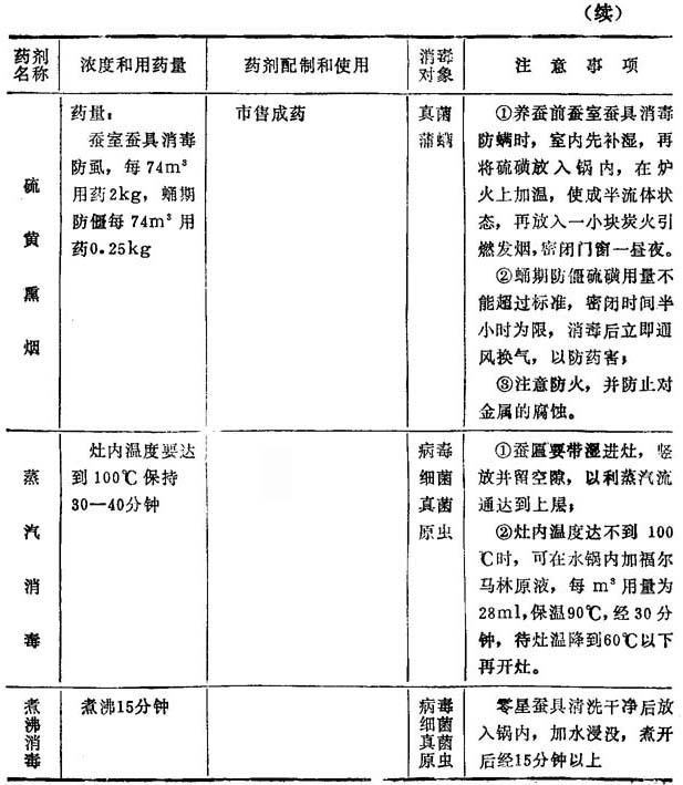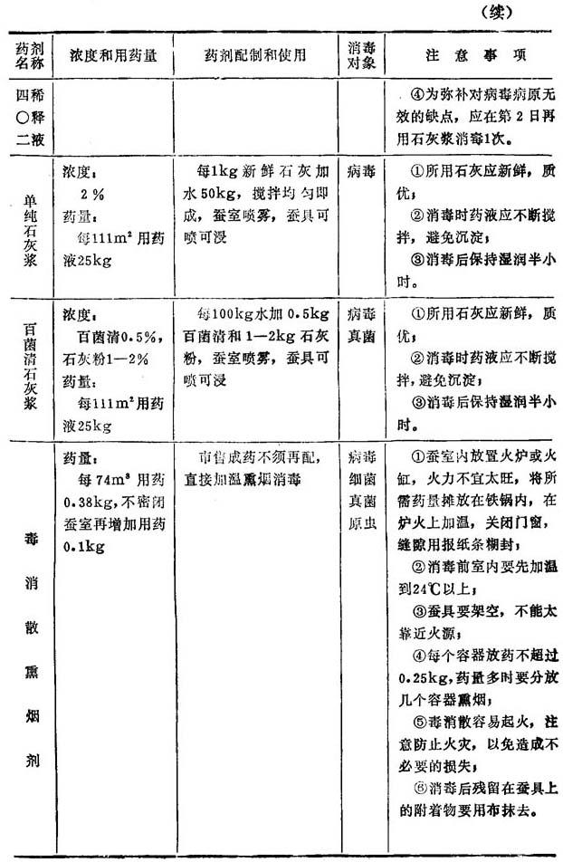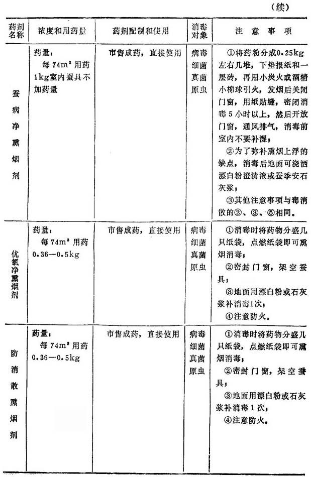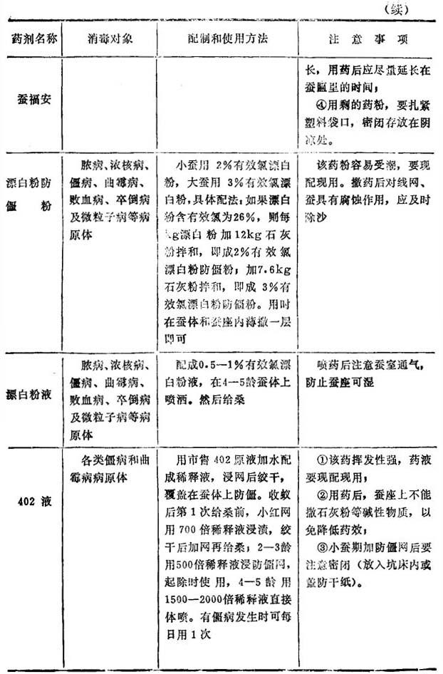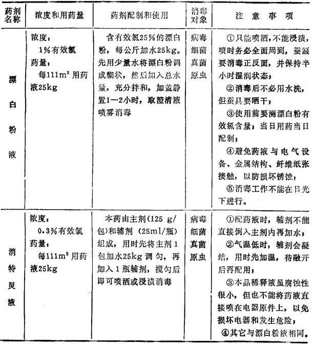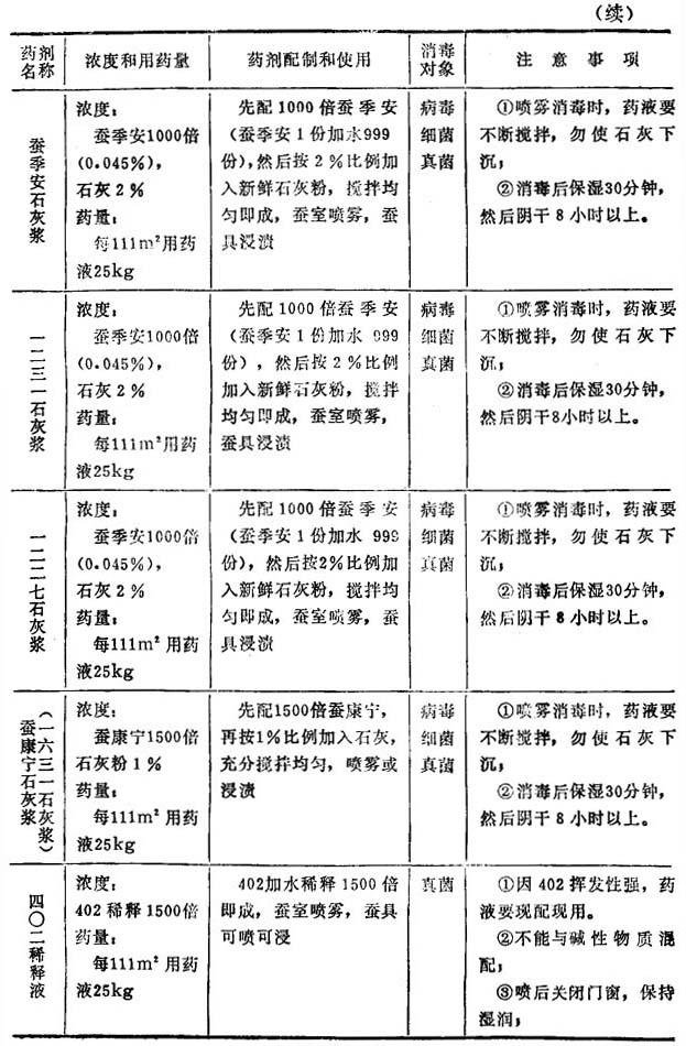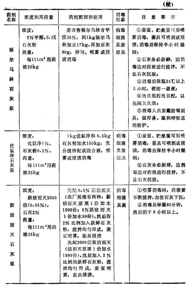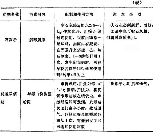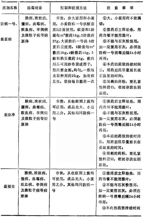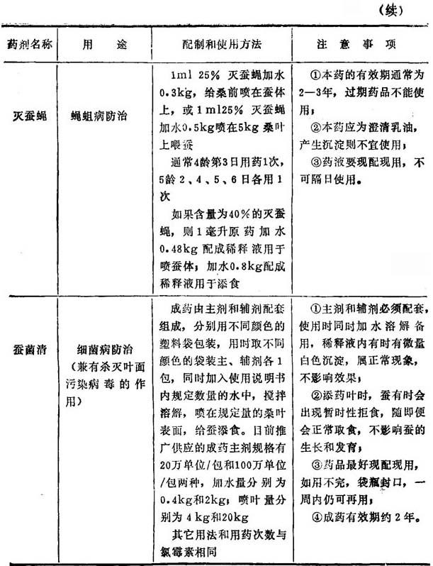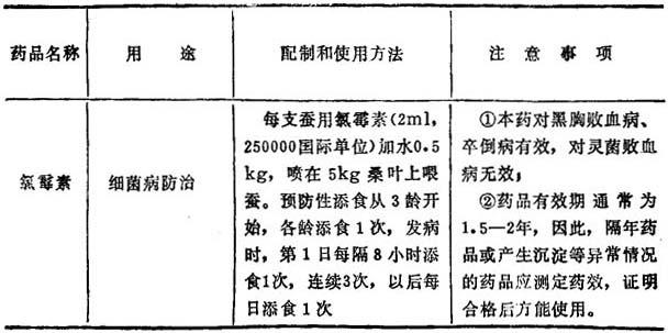 表3 氯霉素、灭蚕蝇和蚕菌清使用参考表