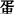【释义】(名)❶ 鸟、龟、蛇等动物所产的带有硬壳的卵:鸡~。❷ (~儿)形状像蛋的东西:山药~|驴粪~儿。❸ 喻指具有某种特点的人(含贬义):糊涂~|坏~。❹ 放在某些动词后组成含贬义的动词:滚~。