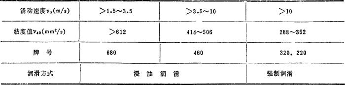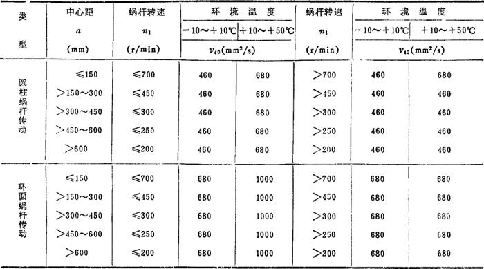 润滑油对蜗杆传动承载特性的影响见表4.17-5.蜗杆传动应选用粘度指数大、粘度适中和加有适量的油性或极压添加剂的润滑油。合成油具有高粘度指数及油性好的特点,适用于蜗杆传动。极压齿轮油不允许作为蜗杆传动用油。 表4.17-5 润滑油对蜗杆传动承载特性的影响  润滑油粘度的选择,对于载荷变动较大或震动较大的蜗杆传动,推荐按中心距及蜗杆转速选用,见表4.17-6,此时蜗杆传动承载能力较大;对于载荷平稳的蜗杆传动,推荐按滑动速度选用,见表4.17-7,高速时,粘度较低些,此时蜗杆传动效率较高。 表4.17-6 按中心距及蜗杆转速选取润滑油粘度  注:本表参考AGMA250.04-1981。 表4.17-7 按滑动速度选取润滑油粘度  注:蜗轮下置时推荐采用喷油润滑或将粘度值提高30%~50%。采用浸油润滑时,下置及侧置蜗杆传动的油面,以取在蜗杆中心至齿根以上10mm范围为宜。上置蜗杆传动建议采用喷油润滑。如采用浸油润滑时,油面可取至1/3蜗轮直径处,润滑油粘度可提高30%~50%。 |
