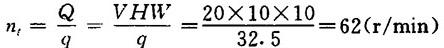 释义 | 螺旋桨的功率计算 【说明】 浆池内浆料循环所耗功率指推进器实际所做的功,即有效功率。 1.理论计算法 【公式】 Ⅰ-—浆沟流速(ft/min) Ⅱ——纸浆的风干浓度(%) Ⅲ——相当于60ft有效流动行程时的摩擦损失,以水位压头计(ft) Ⅳ——通过一个螺旋桨的实际有效流动行程Lf(Lf=2L,L为浆池内净长度)(ft) Ⅴ——指实际摩擦损失所消耗的压头(ft) Ⅵ——代表理论推送量的螺旋桨公称直径规格,其数值组(6)为理论每转推送量(q)(ft3/转);数值组(7)为相应的螺旋桨公称直径规格(ft) Ⅶ——理论转数每100r/min的需用功率,已包括了螺旋桨的效率,可直接用来选配电动机,数值组(8)的单位为英马力[1马力(英)=745.7W] 【例】 已知浆池长为50ft,浆沟宽10ft,深10ft,贮浆浓度为3.5%(风干),沟中浆速 为20ft/min,选用螺旋桨公称直径为 解:如图中虚线所示,按箭头所示方向,由浆速及浆浓得摩擦损失,再由实际流动行程得实际摩擦损失,再由公称直径或每转推送量得在理论转速100r/min时所需的功率为60马力(英)。因该浆池在上述浆速下按计算所得螺旋桨理论转速为: 故实际需用功率为: 3.表功率的计算 【说明】 表功率指输入电动机的功率,用三相功率表和单相功率对照测定。 4.轴功率的计算 【说明】 轴功率指电动机传给推进器的功率。 【公式】 N轴=N表η (1-14-11) 式中 N轴轴功率(kW) Nh 表功率(kW) η 电动机效率(%) 6.总效率的计算 【说明】 总效率是指有效功率与轴功率之比值,是评价推进器性能的主要指标。有实验测定,螺旋桨循环器η=32%,涡轮桨循环器的η=24%。 【公式】 式中 η——总效率(%) N-—有效功率(kW),计算见式1-14-10 其它同上 |