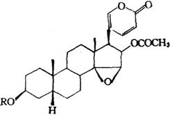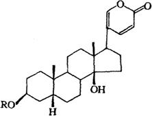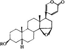 释义 | 蟾酥 【概况】: 异名 蟾蜍眉脂(《药性论》),蟾蜍眉酥(《日华子本草》),癞蛤蚂浆(《新疆药材》),蛤蟆酥(《山东中药》),蛤蟆浆(《中药材手册》)。 基源 为蟾蜍科蟾蜍属动物中华大蟾蜍或黑眶蟾蜍等的耳后腺及皮肤腺分泌的白色浆液,经加工干燥而成。 原动物 中华大蟾蜍Bufo bufo gararizans Cantor,黑眶蟾蜍Bufo melanostictus Schneider。 余项参见“蟾头”条。 。【生药】:采集 多于夏、秋季捕捉蟾蜍,洗净,挤取耳后腺及皮肤腺的白色浆液;或放入缸中,用竹丝搅动刺激或用蒜、胡椒等物塞入其口,使刺激而分泌白浆,用竹刀刮下。 收集的白浆放入圆模型中晒干,为“团蟾酥”或将白浆直接涂在箬竹叶或玻璃板上晒干,为“片蟾酥”,质量较佳。团蟾蜍主产于河北、山东、四川、湖南,辽宁、湖北、新疆等地亦产。 片蟾酥主产于江苏、浙江。 鉴别 性状 团蟾酥形状、大小常因地而异,通常呈扁圆形团块、饼状或扁圆棋子状(习称“棋子酥”),直径3~10cm,厚约5mm,紫棕色、紫黑色或紫红色,表面平滑。 片蟾酥呈不规则片状,厚约2mm,黄棕色或红棕色,半透明,有的一面具箬竹叶脉的平行压纹。质坚强,断面胶质状,有光泽,遇水起泡,并泛出白色乳状液。 气微腥,味初甜后麻辣刺舌,粉末嗅之作嚏。均以质明亮、紫红色、断面均一、沾水即泛白色者为佳。 显微 粉末淡棕色。用甘油水装置,在显微镜下观察呈半透明不规则形碎块;以水合氯醛装置并加热,则碎块透明并渐溶化;如用浓硫酸装置,则显橙黄色或橙红色,碎块四周逐渐溶解缩小,呈透明状圆形小块,显龟裂样纹理,放置稍久渐溶解消失。 理化 取粉末适量,用氯仿提取,制备成样品液。以蟾毒精、华蟾毒精、酯蟾毒配基作为对照品。 吸附剂为硅胶G。展开剂为氯仿-丙酮-环己烷(3∶3∶4)。展层后,用20%三氯化锑氯仿溶液或0.065%盐酸苯肼-硫酸(85%)溶液显色,100℃烘烤5分钟,置荧光灯下检测,样品液与标准品液在相应位置上有相同颜色的斑点。(图见刘训红等《中药材薄层色谱鉴定》.第623页.图540-2) 加工炮制 酒蟾酥 取原药材,捣碎,用白酒浸渍,不断搅动至呈稠膏状,干燥,粉碎。每蟾酥10kg,用白酒20kg。 乳蟾酥 取原药材,捣碎,用鲜牛奶浸渍,不断搅动至呈稠膏状,干燥,研粉。 每蟾酥10kg,用鲜牛奶20kg。 贮藏 密闭,置干燥处,防潮。 。【化学】:蟾酥为蟾蜍的耳后腺及皮肤腺的分泌液干燥品。 蟾蜍种类较多,中国产蟾蜍大型种有:中华大蟾蜍、黑眶蟾蜍、华西大蟾蜍(Bufo bufo andrewsi)、岷山大蟾蜍(Bufobufo minshanius)。蟾酥为著名的有效中药,中国药典要求得自中华大蟾蜍Bufo bufo gargarizans Cantor或黑眶蟾蜍Bufo melanostictus Schneider。因之,商品蟾酥化学成分会因蟾蜍品种、产地及采收加工方法的不同,而有所差异。 故中国药典规定,蟾酥中的蟾毒内酯按脂蟾毒配基(C24H32O4)计,不得少于15%[1]。 蟾酥的化学成分,包括蟾蜍耳后腺和皮肤腺原有成分,刮取时蟾蜍皮肤上的物质,以及采制过程中的次生产物。其主要有效成分为蟾蜍二烯羟酸内酯(Bufadienolide)类物质,可分为蟾毒配基类及蟾蜍毒素类,另有蟾蜍色胺类、甾醇类、肽类、氨基酸、有机酸及多糖类[2]。 ❶ 蟾毒配基类(Bufogenins):此类成分研究的较早,有的可能是蟾酥采收加工过程中的产物。用中国商品蟾酥为研究原料,已发现有:脂蟾毒配基(Resibufagenin)(1)、华蟾毒精(Cinobufagin)(2)、蟾毒灵(Bufalin)(3)、蟾毒它灵(Bufotalin)、华蟾毒它灵(Cinobufotalin)[3]、南美蟾毒精(Marinobufagin)[4]、另有学者从商品蟾酥50g中,分得脂蟾毒配基28g,蟾毒灵1.2g,华蟾毒精1.7g,其它3.7g[5]。脂蟾毒配基(Resibufogenin)商品称“蟾立苏”用于手术期间低血压、体克多种原因引起的中枢性呼吸抑制或呼吸衰竭;蟾毒灵(Bufalin)局麻作用较好[6]。 ❷ 蟾蜍毒素类(Bufotoxims):此类化合物是蟾毒配基的脂肪酸酯、脂肪酰氨基酸酯及硫酸酯类物质。商品蟾酥中有:脂蟾毒配基、华蟾毒精和蟾毒灵各自的3-单辛二酸酯(Resibufogenin、Cinobufagin and Bufalin-3-hydrogen Suberate)(4、5、6)[7]以及它们的-3-丁二酰精氨酸酯(-3-succinoyl arginine esters)(7、8、9)等[8]。 ❹ 其它成分:蟾酥中还有胆甾醇(Cholesterol)、麦角甾醇(Ergosterol)、菜油甾醇(Campesterol)、β-谷甾醇、γ-谷甾醇,粘液质、有抗酸、氨基酸等[3,5]。 附有学者从中国花背蟾蜍Bufo naddei staueh的耳后腺分泌物中得到脂溶的南美蟾毒精(Marinotufagin)、日蟾毒它灵(Gamabufotalin)、砂蟾毒精(Arenobufagin)、远华蟾毒精(Telocinobufagin),还有挥发性的九碳酸、十碳酸及正十八、十九、二十、二十一烷和十八碳二烯酸。认为其作用与中华大蟾蜍分泌物类似,但毒性较大[9]。 中国一种台湾蟾酥得自Bufo bufo asiaticus Steindschner及But bankorensis Borbour的分泌物,从中分得脂蟾毒配基(Resitufogenin)、蟾毒它灵(Bufotalin)、嚏根醇(Hellebrigenol)及脱氢蟾蜍色胺(Dehydrobufotenine)[10]。 参考文献 [1] 中国药典编委会.中华人民共和国药典.一九九五年版.一部.广东科技出版社.化学工业出版社,1995∶340 [2] 沈阳药学院学报 1989;6(3)∶204 [3] 药学杂志(日) 1964;84(12)∶1166 [4] Tetrahedron Letter,1968;(54)∶5669 [5] 医药工业 1985;16(1)∶29 [6] 中草药 1996;27(4)∶246 [7] Tetrahedron Lett 1968;(54)∶5673,1975;(34)∶3017 [8] 药学学报 1992;27(9)∶679 [9] 沈阳药学院学报 1992;9(2)∶98 [10] 生药涫杂志(日) 1984;38(2)∶175 。【药理】:❶ 对心血管作用 蟾蜍季胺(Bufotenidine)1~10μg可使离体兔心收缩增强[1]。 iv蟾酥成分于猫致死量法