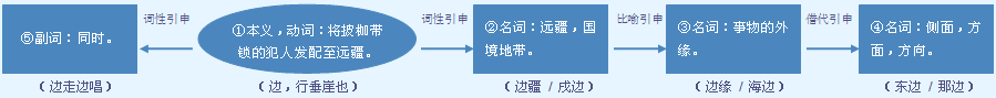 释义 | ![]() ❶几何学上构成角的线段。常带上定语作句子成分。 a.作宾语。 三角形有三条~。 b.作主语。 正多边形的~越多越接近圆。 c.作定语,常带“的”。 三角形任意两条~的和大于第三条边。 ❷边缘。可以儿化。 a.作宾语。 靠~儿|这书还没有切~|沾不上~儿。 b.作主语。 书~破了。 ❸边界,界限。作宾语。 支~|戍~|守~|无~无际。 ❹靠近物体的地方。多用在名词、方位词或数词“两”后面,构成词组或方位词作相应的成分。 a.作主语。 小路上,石桥~,有撑起伞慢慢走着的人|他身~带着一个小孩儿|左~是一间独立小屋,右~是两间正屋|旁~还站着一个小青年|墙~靠着一把铁锨。 b.作宾语。 小金鱼慢慢游到了我身~|几位战士来到了黄河~。 c.作定语,常带“的”。 南~的半个天响晴白日,北~的半个天乌云如墨|海浪拍打着岸~的岩石。 d.构成介宾词组作状语、补语。 来往的人从栅栏外~就看得见她|小沙包在她裤脚~飞来飞去|海轮密密麻麻地排列在码头两~。 分别用在同一主体发出的两个或几个动作之前,表示动作同时进行,而且紧紧相连。具有关联作用。一般用在动词前作状语。 ~走~说|他就这样~思考~劳动,一气干了三个多小时|哥哥~笑~说,引得大家都跟着大笑起来|我们~收购,~打包,~调运,效率很高。 【辨】 有的书上把“边学边干”中的“边”作连词,其实应为副词。这种“边”虽有关联作用,但也有修饰作用,所以有关联作用的词并不都是连词。 【词语】 边鄙 边陲 边地 边防 边幅 边关 边海 边角料 边境 边框 边卡 边门 边区 边塞 边沿 边远 边寨 【注意】 “边”用作方位词后缀时(如“左边”“东边”“前边”),应念轻声。 字源解说 边,金文 ![]() ![]() ![]() ![]() ![]() ![]() ![]() ![]() ![]() 附 文言版《説文解字》:邊,行垂崖也。从辵,臱聲。 附 白话版《说文解字》:边,走到接近无路可走的崖岸水际。字形采用“辵”作边旁,采用“臱”作声旁。 引申线索 ![]() 【字族索引】 力 【同音字】 biān |