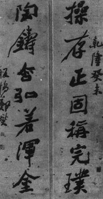 释义 | 行书七言联 【简介】: 淸·郑燮书于乾隆癸未(1763)。纸本。行书。凡上下联,正文十四字,款八字。刊于日本《明淸书道图说》。 【赏析】: 同金农一样,郑燮也是一位勇于创新的书家。他公然申明自己的书法是“不在寻常蹊径”的“震电惊雷之字”。淸人蒋宝龄在《墨林今话》中说:郑燮的书法“隷楷参半,自称‘六分半书,,极瘦硬之致,亦间以画法行之”。这幅用行楷书写的七言对联“操存正固称完璞,陶铸含弘若浑金”,正鲜明地表现出了他所独创的“六分半书”的艺术特色。 首先从笔法上看:在圆转连绵的行楷笔画中,渗入了浓厚的隷书笔意(如“正”字的横画、“固”字中的“古”等),揉进了相当的草书笔法(如“完”字的末笔、“铸”字的右半边、“含”字的上一半等);将用笔方法多样的眞、行、隷、草等几种不同书体融会贯通,变化出“兼衆妙之长”的新面目—“板桥体”。在他的这幅对联中,有的笔画“以圆驭方”、古拙率眞,近似《瘗鹤铭》;有些笔画似“长枪大 其次,其结字方法亦别具一格:它让正者仍正(如“固”、“正”等),斜者更斜(如“存”、“若”等);长者仍长(如“浑”、“完”等),扁者更扁(如“陶”、“弘”等);散者仍散(如“璞”、“弘”等),聚者更聚(如“含”、“铸”等)。纵览全篇,笔画粗粗细细,轻轻重重,方方圆圆;字形大大小小,正正斜斜,散散聚聚;布白疏密相间,错落有致,挥洒自然;富于非凡的神采和隽永的韵味。 这种劲挺洒脱的“六分半书”,博得了很多有识之士的赞:“满目风物斜更好”、“板桥写字如写兰,波磔奇古形翩翩”、“未识顽仙郑板桥,……别开临池路一条”。连晚淸大书家何绍基也认爲“板桥字仿山谷,间以兰竹意致,尤爲别趣。”这裏所谓的“别趣”即是一种“眞趣”。板桥书法外拙内秀,是以“眞气、眞意、眞趣”爲其内涵的;这正是郑燮愤世嫉俗的情緖和傲岸不驯的性格在艺术上的某种反映。 郑燮的这种“震电惊雷之字”,以崭新面貌出现在当时书坛,给风行一时的“馆阁体”以有力冲击。虽然狂怪是其短处,而古朴自然、雅俗共却使它获得了巨大的生命力。郑燮同金农各自创造出一种亦楷亦隷的新书体,开拓出一条碑帖结合的新道路;他们都不愧爲淸代书法变革的先驱人物。 |