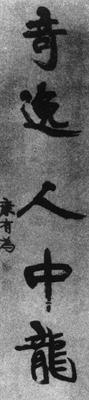 【赏析】: 康有爲虽说在政治变革上的作爲未能尽如人意,甚至可以说是一名失败者,但是他在书法变革中的贡献却是举世公认,无需置疑的是一名成功者。书法发展到淸代,出现了一个令人振奋的复兴时期,在这个时期中书坛呈现了一派百花争艳的景象,而康有爲则是其中开放得最晚,也最爲夺目的一朶奇葩。 这件属于康氏晚年作品的五言联,便足以代表他的典型风格,从中我们旣可以看到那“开张”的体势,也可以体味到那“奇逸”的气格。整幅作品显得十分大方洒脱,似不经意却又绝不乖张,不爲前人法度所囿却又绝不是毫无根底和主旨的信手涂抹。在这裏面我们不难见到《石门铭》的遒媚,《泰山金刚经》的圆劲,这件作品的结字虽无太明显的个性,但用笔却非常耐人寻味,他强调线条书写得自然舒展,依势成形,特别是点画间的引带,淸楚地向我们提示了连属关係形成的用笔要求,与此同时还尽可能的减少用笔动作,用一种随意而略带生涩的笔势来促成其隽雅而雄健的气势。使人感到有一种飘然欲仙的境界,但是,若从整体章法来看,则:“开张”二字的错位稍觉生硬,“奇逸”二字的组接又略感紧密,于是不免有一些上下不贯通之嫌。这也可以说是有一点美中不足吧。 |