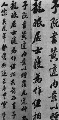 【赏析】: 包世臣早年学习馆阁体,二十五岁学二王,后纠正简牍带来的婉丽之病,改习欧、虞和颜眞卿,最后致力于篆隷北碑,自称:“廿年而后学,四十而后知。”其书法执笔用双勾,下笔取逆势:运锋则笔毫平铺纸上,以追求四面的满足:结字师六朝,力追左右牝牡相得之致。以侧取势是他的书法最大的特点。从这件作品看,侧笔势贯全幅,笔画形成不同的、互相对应的侧面,流动中呈现出波浪起伏的形状,“筋摇骨转”,体势伸展,跳蕩飞扬,姿态飘逸。行笔速度缓,笔势稳,飘逸之中见沉著。用墨稍淡,墨色丰润,笔能摄墨,指能伏笔,笔墨相称。 包世臣认爲:“作草虽纵逸互用,其环转连属,有自三五字至八九字者,而用锋洁凈、牵掣悉归平直,无一伤偏软缭绕。”此语基本符合他的情况。表现在字字之间很少有柔丝的连带。大多是每字一停、每字一收笔。这样的写法,却又并不使人感到僵板。因爲他能够以行笔所形成的笔画不同的侧面的对应、流动中形成的侧势,以及字的正斜对应来表现气势贯通,构成不同于别人的个性。他的书法,对淸代中、晚期以来的书坛产生过一定影响。但也有人认爲,他过于强调笔毫平铺,多数笔画按多于提,显得筋骨不足,节奏感弱,有“终伤婉弱”之讥。 |