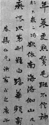 【简介】: 近代·郑沅书。纸本。行书。共四行,九十七字。写于一九三〇年,尺寸不详。载一九八八年四川美术出版社《民国时期书法》(下)。 【赏析】: 郑沅的书法早年攻习籀篆,行楷书学王羲之,得王字之秀逸遒劲,后攻章草。他的这幅作品就其笔画的波磔和迴环形式、字间布白、风貌趋于章草。但从构字来看,却是杂揉隷书、章草、楷行而用之,融洽交合,浑然成篇,并无拼凑之感。足见作者于书道涉猎之广,并善于融滙贯通,爲我所用的功力和才能。 作品布局精雅端严,行序和谐,疏密互衬,虚实相映;字势以横扁朗健爲基调,异式揉合,机杼自出,在平正中寓流动;笔画瘦峭犀利而纤秾互见。通篇意韵淸峻虚远,格调不俗。