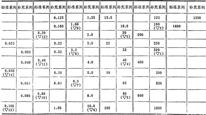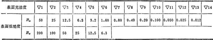 表面光洁度▽1~▽14与表面粗糙度高度参数的标准系列值及补充系列值的近似对应关系见表1.7-38、39。 表1.7-38 表面粗糙度Ra(轮廓算术平均偏差)值与表面光洁度的对应关系 μm  由表可知,只有▽7~▽14的Rz值与表面粗糙度的标准系列有直接对应关系,其余的Ra、Rz值均与补充系列有直接对应关系,因此很难编出优先使用标准系列的转换关系,现仅推荐以下三种转换方法的对应值: ❶ 取所在级别上一档的标准系列值,见表1.7-40所示。显然此时提高了表面功能,但增大了加工成本。 表1.7-40 表面粗糙度与表面光洁度转换关系❶ μm  ❷ 取所在级别下一档的标准系列值,见表1.7-41所示。显然此时降低了加工成本,但应注意保证原功能要求。 表1.7-41 表面粗糙度与表面光洁度转换关系❷ μm  ❸ 保持原表面光洁度参数的最大值,即转换为补充系列(▽7~▽14的Rz值除外),见表1.7-42. 表1.7-42 表面粗糙度与表面光洁度转换关系❸ μm  |