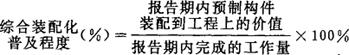 它可分作某项工种工程预制装配化普及程度和综合装配化普及程度两个指标。各种物件是指建筑工程所需的梁、板、柱、屋架、砌体等物件,它由固定的或临时加工厂生产,或在现场制作。