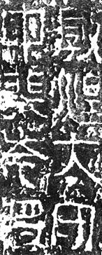 六行,行十字。其书以篆法作隶,体格宽博匀满,笔画沉劲,气势不凡。碑旧在新疆巴尔库尔城西五十里,雍正间移置城西北三里关帝庙前。
