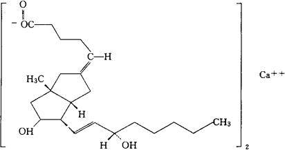 C44H70CaO8=767.12 CAS-81703-55-1 CAS-81845-44-5(ciprostene) [3aS-[2Z,3aα,5β,6α(1H,3R*),6aα]]-5-[六氢-5-羟-6-(3-羟-1-辛烯基)-3a-甲基-2(1H)-并环戊二烯亚基戊酸钙盐(2∶1)。 5-[Hexanydro-5-hydroxy-6-(3-hydroxy-1-octenyl)-3a-methyl-2(1H)-pentalenylidene,pentanoic acid,calcium salt(2∶1),[3aS-[2Z,3aα,5β,6α(1H,3R*),6aα]]-. (Z)-(3aS,5R,6R,6aR)-六氢-5-羟-6-[(E)-(3S)-3-羟-1-辛烯基]-3a-甲基-△2(1H),δ-并环戊二烯戊酸钙(1∶2)。 Calcium(Z)-(3aS,5R,6R,6aR)-hexahydro-5-hydroxy-6-[(E)-(3S)-3-hrdroxy-1-octenyl]3a-methyl△2(1H),δ-pentalenevalerate(1∶2). 抗血小板凝聚药。 Ciprostene Calcium,U-61,431F. INN(Ciprostene),USAN.  |