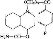C20H27FN2O3=362.44 CAS-54063-29-5 4′-氟-4-(八氢-4-羟-1(2H-喹啉基)苯丁酮氨基甲酸酯。 4′-Fluoro-4-octahydro-4-hydroxy-1(2H-quinolyl)butyrophenone carbamate(ester). 4-[4-[(氨基羰基)氧]-八氢-1(2H)-喹啉基]-1-(4-氟苯基)-1-丁基酮。 4-[4-[(Amino carbonyl)oxy]octahydro-1(2H)-quinolinyl]-1-(4-fluorophenyl)-1-butanono. 抗精神病药,抗心律失常药,止泻药。 西卡卜龙。 Cicarperone. INN,USAN.  |