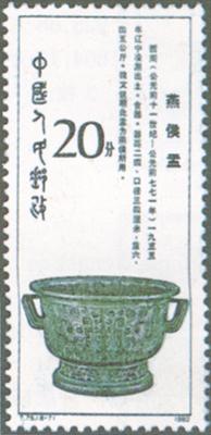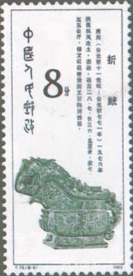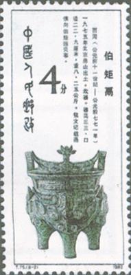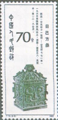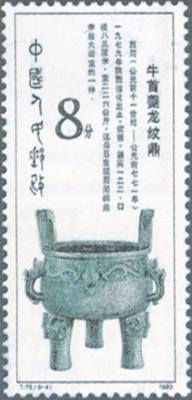 释义 | 西周青铜器 发行日期:1982年12月20日 齿孔度数: 印刷版别:影写版和雕刻版 票幅:27×60 全张枚数:35(7×5) 设计者:邵柏林 雕刻者:高品璋、孙鸿年、呼振源、阎炳武、赵顺义、李庆发、姜伟杰 印刷:北京邮票厂 (1)4分 何尊 300万枚 (2)4分 伯矩鬲 300万枚 (3)8分 利簋 600万枚 (4)8分 牛首夔龙纹鼎 600万枚 (5)8分 折觥 600万枚 (6)10分 蟠龙兽面纹罍 300万枚 (7)20分 燕侯盂 300万枚 (8)70分 日己方彝 200万枚 (1)-(8) 8枚全 |