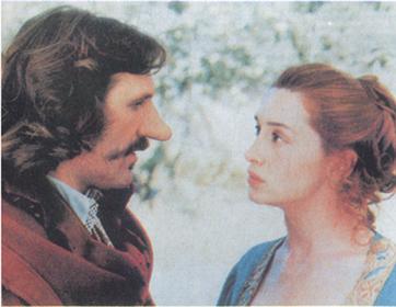 释义 | 西哈诺·德·贝热拉克 【片头介绍】: 1990 彩色片 138分钟 法国阿谢特首映公司/电影总联合会/电视一台/DD电影制片公司联合摄制 导演:让-保尔·拉普诺 编剧:让-保尔·拉普诺 让—克洛德·卡里埃(根据爱德蒙·罗斯丹同名五幕诗剧改编) 摄影:比埃尔·劳穆 主要演员:热拉尔·德帕迪厄(饰西哈诺) 安娜·布洛谢(饰罗克珊娜) 万森·贝雷兹(饰克里斯蒂安) 雅克·韦贝尔(饰吉什伯爵) 本片获1990年戛纳国际电影节最佳男主角、最佳摄影奖;1991年法国电影凯撒奖最佳影片、最佳导演、最佳男主角、最佳男配角、最佳摄影、最佳美工等十项奖,1991年美国影艺学院最佳外语片奖提名 【剧情简介】: 1640年一个细雨迷濛的晚上,勃艮第大厦前车水马龙,热闹非凡。 灯影交错中人们纷纷涌向大厦内的剧场:今晚这里将首演典雅派诗人巴洛的诗剧《拉·克洛莉丝》。观众中既有平民、小偷、火枪手,又有博学的法兰西学院院士、御前的宠臣、世袭的贵族和珠光宝气的贵妇名媛。 红衣主教兼首相黎希留的外甥女婿吉什伯爵也在一群纨袴子弟的簇拥下登上贵宾席。才貌惊人的罗克珊娜走向楼座时,无人不投以爱慕的目光。刚从外省来到巴黎、即将到加斯科尼军团当军官候补生的克里斯蒂安见到罗克珊娜,像丢了魂魄一般痴痴凝望,而罗克珊娜也被这外省青年的英俊相貌所吸引…… 点燃著上百支明烛的大吊灯已渐渐升起。人们翘首以待的演出即将开始。然而糕饼师傅兼诗人拉格诺却像热锅上的蚂蚁,他逢人便打听西哈诺是否也来看戏。今晚将领衔主演的名角蒙弗娄里不久前得罪过西哈诺。西哈诺曾警告他一月之内不准登台。今晚蒙弗娄里倘若依仗权贵撑腰无视西哈诺的禁令,西哈诺决不会置之不理。 况且有消息说,权贵已派遣100名杀手要在戏散之后半路击杀曾写诗挖苦过他们的里尼埃尔。倘若西哈诺不出面干预,里尼埃尔必死无疑。 西哈诺是何许人?他名份上是加斯科尼军团的军官候补生,却跟一般锦衣鼎食的贵族子弟不一样。他不修边幅,浪荡不羁。然而他的武功足以抵挡百人的进攻,他的文才更无人能匹敌。只是他长了一个大鼻子颇不雅观,谁若当他的面提到或暗示鼻子或与鼻子有关的话,谁就等于有意冒犯他,他的长剑和比长剑更锋利的诗句,决不轻饶。 他爱打抱不平,最恨趋炎附势。他的仗义和勇敢在民间传为美谈。 宣告开演的杖击声已响过三遍,人工制造的烟雾把大腹便便的名角蒙弗娄里送上了舞台。然而,他刚拿腔拿调地念了一句半开场白,从三楼的平民座中传来雷鸣般的喝斥声。原来西哈诺早在那里静候多时,如今见到蒙弗娄里果然胆敢无视他的警告,便飞步下楼,硬把他连同上台保护他的贵族子弟统统赶下舞台。 眼巴巴等著看戏的观众尽管不无抱怨,却没有一人敢出头顶撞西哈诺。 为了补偿剧院辍演的损失,西哈诺抛给剧务一口袋金币…… 吉什伯爵无奈地随著看不成戏的观众走出剧场,心中很不高兴。他挑动瓦尔维尔子爵去羞辱西哈诺以此出出闷气。 既然西哈诺最忌讳人家提到鼻子,瓦尔维尔就过去鄙夷地对他说:“您的鼻子真大!”不料西哈诺不仅不恼,反而嘲笑子爵词汇贫乏。他向子爵列举了不下20种有关大鼻子的说法。西哈诺挖苦子爵“金玉其外,败絮其中”,气得子爵拔剑要与他拼命。西哈诺一面还击,一面即兴赋诗,诗题是《咏西哈诺在勃艮第大厦前与一个草包决斗》。 诗句一句比一句辛辣,博得围观者笑声不绝;剑法一招比一招惊险,引来一阵阵的赞叹和喝彩。瓦尔维尔子爵不甘心当众遭到如此的惨败,竟乘西哈诺不备想从他身后突然袭击。身手敏捷的西哈诺返身一挡,最后竟让子爵倒在他的剑下。看热闹的人们眼见出了人命,纷纷逃散。西哈诺也趁乱离开了肇事的现场。但当他听说里尼埃尔将受到100名杀手的伏击时,便义无反顾地前去打退阴谋伏击的杀手。 谁能知道在西哈诺急躁勇武、玩世不恭的外表下,其实深藏著一副细腻多情的柔肠?罗克珊娜是他的表妹,同他青梅竹马一起长大。他对她倾心已久,但因自惭形秽,一直不敢启齿。 当罗克珊娜约他在拉格诺糕饼店的后院相见时,西哈诺早早就来到约定的地点。他一次次设想著向表妹倾诉心曲的措辞。 然而,他没有想到罗克珊娜已经爱上了克里斯蒂安,她约西哈诺来见面,目的在于要西哈诺了解一下克里斯蒂安是否有与他外貌相称的文才,因为罗克珊娜更看重内心的美。西哈诺得知表妹已有所爱,便更深地掩盖自己的感情。 他答应表妹一定善待克里斯蒂安。 克里斯蒂安却徒有英俊的外貌。他虽热烈地爱著罗克珊娜,但无法用言词来表达。西哈诺决定帮助他。由西哈诺代笔的一封封情书,为克里斯蒂安征服了罗克珊娜的芳心。甚至当克里斯蒂安与罗克珊娜幽会时,西哈诺都躲在暗处代克里斯蒂安倾诉了缠绵而优雅的心曲。他还设法拖延了吉什伯爵前来纠缠罗克珊娜的时间,使罗克珊娜及时地与克里斯蒂安终成眷属。 吉什伯爵虽早有妻室,但他也爱上了才貌双全的罗克珊娜。 为了讨好罗克珊娜,他答应照应克里斯蒂安;当他知道他们已经结婚后,一气之下把克里斯蒂安打发上了前线,他那时已是指挥加斯科尼军团的上校。至于西哈诺,伯爵当然更不会放过。克里斯蒂安和西哈诺所在的军团要去攻打阿拉斯的西班牙军队。军事形势瞬息万变,法军不久就陷入西班牙军队的重重包围之中。西哈