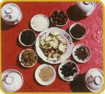 南梁瓜 银川特产的西瓜,是西北最优良的瓜种。个大、籽少、瓤多,可以保存半年之久。隆冬时节,吃著西瓜看雪花,别有情趣。 盖碗茶 宁夏人喝茶,最讲究“三炮台”碗、陕青毛尖茶、“牡丹花”开水。喜庆日子,佳宾光临以“八宝茶”待客。宁夏人日常饮用的是“三香茶”。 珍珠米 宁夏大米粒圆、色洁、油润、味香。相传清朝曾被列为贡米。其中以青铜峡市叶盛堡一带生产的“叶盛白皮大稻”最为有名。