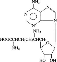 C15H23N7O5=381.39 CAS-58944-73-3 (β-D-核)-6,9-二氨基-1-(6-氨基-9H-嘌呤-9-基)-1,5,6,7,8,9-六去氧-癸呋喃糖醛酸。 (β-D-ribo)-6,9-Diamino-1-(6-amino-9H-purin-9-yl)-1,5,6,7,8,9-hexadeoxy-decofuranuronic acid. 6,9-二氨基-1-(6-氨基-9H-嘌呤-9-基)-1,5,6,7,8,9-六去氧-β-D-核-癸呋喃糖醛酸。 6,9-Diamino-1-(6-amino-9H-purin-9-yl)-1,5,6,7,8,9-hexadeoxy-β-D-ribo-decofuranuronic acid. 核苷抗菌素,抗真菌药。 Sinefungin,Compound 57926,A 9145,RP 32232,Antibiotic A9145,Antibiotic 32232. INN,USAN.  |
