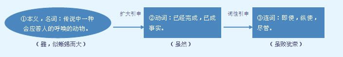 字源解说 唯,既是声旁也是形旁,表示答应。雖,金文 = (唯,答应)+ (虫),表示会应答人的呼声的动物。造字本义:传说中一种会应答人的呼唤的动物。篆文 承续金文字形。俗体楷书 省去正体楷书 的“隹” ,变成“虫”与局部“唯”的合体字。 附 文言版《説文解字》:雖,似蜥蜴而大。从虫,唯聲。 附 白话版《说文解字》:虽,像蜥蜴但比蜥蜴大的动物。字形采用“虫”作边旁,“唯”是声旁。 引申线索
