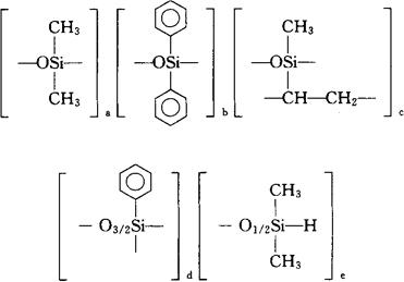 (C2H6OSi)a(C12H10OSi)b(C3H6OSi)c(C6H5O3/2Si)d(C2H7O1/2Si)e