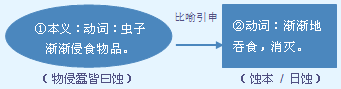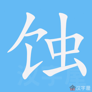 释义 | ![]() 亏损: ~本|亏~|这笔生意恐怕得~一万块。 赚 zhuàn ~钱|只~不赔|这趟买卖~了一大笔钱。 赢 yíng ~利|刚开始做生意嘛,能~一点就不错了。 字源解说 食,既是声旁也是形旁,表示呑吃。蚀,篆文 ![]() ![]() ![]() ![]() ![]() ![]() ![]() 附 文言版《説文解字》:蝕,敗創也。从虫,从人,从食,食亦聲。 附 白话版《说文解字》:蚀,腐败、创伤。字形采用“虫、人、食”会义,“食”也作声旁。 引申线索 ![]() 【字族索引】 虫 【同音字】 shí |