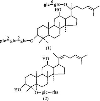释义 | 西洋参 【名称出处】:《纲目拾遗》 【概况】: 异名 西洋人参(《本草从新》),洋参(《药性考》),西参(《增订伪药条辨》),花旗参(通称)。 基源 为五加科人参属植物西洋参的根。 原植物 西洋参Panax quinquefolia L. 历史 18世纪初叶,美国入Lafiteau在加拿大的森里发现类似于中国人参的植物,此植物早为林奈Linnaeus,C.订名为Panax quinquefolia L,即为西洋参,产于加拿大的缅因州,向南分布到美国的佛罗里达州和明尼苏达州等地。 因其性较缓和,适宜于老年体弱者服用,后渐传入中国。 最早在庐山植物园引种栽培成功,现中国东北地区有大面积栽培。 形态 多年生草本,高2.5cm左右,全体无毛。根茎短,根肉质,圆锥形,有时分歧。 茎圆柱形,有纵条纹或略具棱。掌状5出复叶,叶柄长5~7cm,通常3~4枝轮生于茎端;小叶片膜质,广卵形至倒卵形,长4~9cm,宽2.5~5cm,先端急尖,基部阔楔形,小叶柄长约1.5cm,下部2片小叶最小,近于无柄。总花梗由茎端叶柄中央抽出,较叶柄稍长或近于等长;伞形花序,花多数,花柄细而短,基部有卵形小苞片1枚;萼绿色钟状,先端5齿裂,裂片钝头,萼筒基部有三角形小苞片1枚;花瓣5,绿白色,长圆形;雄蕊5,花丝基部稍宽,花药卵形至长圆形;雌蕊1,子房下位,2室,花柱2,上部分离呈叉状,下部合生:花盘肉质环状。浆果扁圆形,熟时鲜红色,果柄伸长。花期7月,果期9月。(图见《中国药用植物志》.第6册.图282) 生境与分布 原产北美洲。 近年来中国东北地区多有栽培。 西洋参与人参相近,其不同点在于西洋参总花梗与叶柄近等长或稍长,小叶片倒卵形,上面几无刚毛,边缘的锯齿不规则且较粗大。根部圆锥形,较短。。 【生药】: 采集 选取种植3~6年的根,于秋季挖采,除去分枝、根须,晒干。 喷水湿润,撞去外皮,再用硫黄熏后晒干。也有挖起后即连皮晒干或焙干。药材主产于北美洲,中国吉林、河北、山东、福建等地有引种栽培。 鉴别 性状 全须生晒洋参主根圆柱形、短圆柱形(下部有支根分歧者),圆锥形或纺锤形(下部无支根分歧者),长1 5~9cm,直径0.5~3cm;表面淡黄色、灰黄色或土黄色,有纵皱和密集的横纹及少数横长的皮孔。根茎被除去或残留,圆柱形或扁圆柱形,长0.1~1.3cm,直径0.1~1cm,具1~4个凹窝状茎痕,有时可见不定根;支根无或2~6个,根须具疣状突起。质硬脆,断面淡黄白色,可见棕色环,皮部散有红棕色或黄棕色小点(树脂道及油管),具放射状裂隙。 气微,味苦、微甘。 生晒洋参,与全须生晒洋参相似,但支根已除去。 进口西洋参,多加工成生晒洋参,又称“原皮西洋参”,表面灰黄色、棕黄色或土黄色,横纹较明显,大多无根茎,质坚硬而重。 理化 取样品粉末适量,加乙醚置水浴上回流1小时,弃去乙醚液,残渣用70%乙醇回流提取1小时,提取液在水浴上蒸至近干,加水适量溶解残留物,水溶液移至分液漏斗中,用水饱和的正丁醇萃取5次,将正丁醇萃取液减压浓缩至近干,加甲醇溶解,使成每1ml相当于0.5~1g原药材的供试液,点于硅胶H板上,以氯仿-乙酸乙酯-甲醇-水(15142210)下层液为展开剂,以人参皂甙-Rb1、Rg1为对照。预饱和15分钟,展开,展距12~14cm,取出,立即用热气流吹干,喷以10%硫酸乙醇液,立即于110~120℃加热数分钟显色,置日光及紫外光灯(365nm)下检视。(图见《中药材薄层色谱鉴别》.图85) 加工炮制 取原药材,去除杂质,用适量清水闷润,待软后切片,晒干。 贮藏 置阴凉干燥处,防霉,防蛀。。【化学】: 1854年从加拿大西洋参根中得到无定形西洋参圭能甙(Panaquilon),一个世纪后深入研究才分得人参皂甙-R0、-Rb1、-Rb2、-Rc、-Rd、和-Rc[1];从茎中得人皂甙-Rg1、-Rd、-Re、A1和C[2],并证明A1为假人参皂甙-F11,C为人参皂甙-Rb3;辽宁产的西洋参中得到人参皂甙-R0、-Rb1、-Rb2、-Rc、-Rd、-Re、-Rf、-Rg1、-Rg2、-Rg3、-Rh1和新成分-RA0(Ginsenoside-RA0)(1)为20(S)原人参二醇-3-[-0-β-D-葡萄吡喃糖基(1→2)β-D-葡萄糖吡喃糖基(1→2)β-D葡萄糖吡喃糖基,20-[-0-β-D-葡萄吡喃糖基(1→6)β-D-葡萄吡喃糖甙[3]。 微量20(R)-原人参二醇和新成分人参皂甙-Rg4为[3β,6α,12β一三羟-20(22),24一达玛二烯-6-0-α-L-鼠李吡喃糖基-(1→2)-葡萄吡喃糖甙(2)[4];人参皂甙类的甙元为达玛烷型(人参二醇和人参三醇)和齐墩果酸烷型[5~7]。 果胶3%~4%,其组成为半乳糖酸、半乳糖、阿拉伯糖、鼠李糖、木糖;总淀粉36%~68.6%,总糖68%~74%,单寡糖26%~32%[8];还有蔗糖、人参三醇[3]。 氨基酸16种,主根含5.932%,须根7.737%,茎3.372%,叶11.723%,花蕾13.922,果实5.006%[3]。 挥发油中已检出45种成分,其中15种倍半萜,以反式β-金合欢烯含量最高[9,10];16种无机元素[11],其他还有棕榈酸和齐墩果酸[3]、豆甾烯醇、豆甾-3,5-二烯-7-酮[12]、胡萝卜甙等。 参考文献 [1] 生药学杂志(日) 1978;32(2):96 [2] Planta Med 1981;42(4):406 [3] 药学学报 1987;22(10):750 [4] 吉林农业大学科研论文集,1988:433 [5] 吉林农业大学学报 1979;(1):5 [6] 特产科学研究(西洋参专辑) 1981:56 [7] 中药材科技 1981;(2):26 [8] 中国药学杂志 1989;24(4):207 [9] 药学通报 1987;22(7):401 [10] 中成药研究 1985;(12):29 [11] 西北植物学报 1987;7(4):266 [12] 吉林农业大学学报 1988:(1):22 ❶ 对心血管的作用 西洋参皂甙具有抗心律失常的作用,西洋参皂甙60mg/kg iv能对氯仿诱发的小鼠室颤,对垂体后叶制剂所致大鼠心肌缺血和心律失常均有明显拮抗作用;80mg/kg iv对氯化钡诱发大鼠心律失常具有明显的预防和治疗作用,能明显提高哇巴因诱发豚鼠室早、室迷、室扑、室扑颤以及停搏的阈剂量[1]。 
