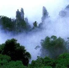 位于索溪峪的西部,是一盆地形峡谷峰林群。“海”中峰柱林立,千姿百态,林木葱郁,有“峰海”、“林海”之称。春夏或春秋初雨后初晴,则会形成云涛翻涌、铺天盖地的极为壮观的“云海”,西海的主要特色是三海合一。 游西海可从军地坪至叶家岗,再由此登山,一路上可见到睡美人、天然植物园、回音壁、骆驼峰、天台等景点。天台最有特色,耸立的山峰高达1000余米,有人工天梯通向峰顶,登上峰顶再观西海,便可饱览茫茫的西海峰林胜景。 而观看西海的云,则数卧龙岭一线天。西海的云涛来得快,变得奇。大雨初晴时,数千座比肩而立的山峰间突起升起一团团白云,转眼间,白茫茫的云涛便在石山绿林之间翻卷,变幻著一个个奇异的造型。最壮观的要数云瀑。当南边的热气流上升,西海中的云雾飞快蒸腾消散之时,北面背阴的地方温度低,那云雾以山脊为界,铸成一堵矗立天际的云墙。当南面的热气流上升到一定的程度,北部的冷气流推动云墙向南冲击,倏见矗立的云墙坍塌,那滚滚的云团如巨大浪花倾斜下来,像要砸碎地面的一切,这就是动人心魄的云瀑。