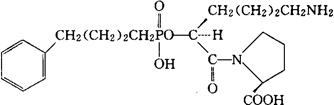 释义 | 西罗普利 C21H33N2O6P=440.48 CAS-111223-26-8 (S)-1-[6-氨基-2-[[羟(4-苯丁基)膦基]氧]-1-氧代己基]-L-脯氨酸。 (S)-1-[6-Amino-2-[[hydroxy(4-phenylbutyl)phosphinyl]oxy]-1-oxohexy1]-L-proline. 1-[(2S)-6-氨基-2-羟己酰]-L-脯氨酸,氢(4-苯丁基)膦酸酯。 1-[(2S)-6-Amino-2-hydroxyhexanoyl]-L-proline,hydrogen(4-phenylbutyl)phosphonate(ester). 抗高血压药。 Ceronapril,SQ 29,852. INN,USAN. |