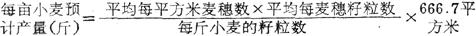 在实际工作中,先在地块内选几个一平方米的样本,计算各样本的麦穗数,求出每平方米的平均穗数,再测定平均每穗的籽粒数,而麦粒重量可用过去几年同品种麦粒的平均重量,但要考虑到当年作物生长状况。