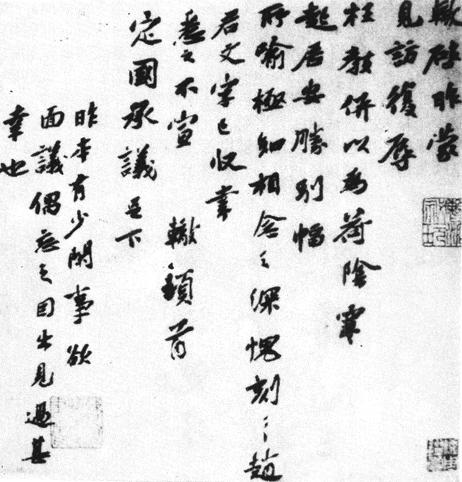 释义 | 见访帖 【简介】: 宋·苏辙书。纸本。行书。凡十一行,每行字数不一,共七十二字。24.5×23.5cm。台北故宫博物院藏。刊于台湾《故宫历代法书全集》(十)。 【赏析】: “三苏”中的苏辙名气诚然不及其父兄,但毕竟还是“唐宋八大家”之一,更是宋代书法史上的一位佼佼者。 如果仅仅就苏辙这幅尺牍的结体而言,我们是很容易发觉与其兄长苏轼酷肖之处的。其中的原因,一方面可能因爲他们兄弟俩的性格、气质、家学渊源及环境陶染等大致相同,另一方面则可能因爲兄长苏轼的书法威望太高而直令其弟心折手摹,无意再闢新境。但是,再细心一点,还是可以找出辙轼之间的种种差异—前者用笔除偶尔参用肥笔外,大多均以“瘦劲可喜”面目出现;后者则主要运用肥壮之笔,丰满艳腴、憨态可掬。前者用墨枯润相济,色彩层次多变;后者则纯以“湛湛然如小儿目睛”的浓墨爲之,显得典朴凝重。前者挥毫悠閑澹泊,情感节奏始终抱一,静意盎然;后者挥毫则“大江东去”,情感波澜交叠鼓蕩,动势逼人。 于是,在结体、用笔、用墨及挥毫过程揣度等方面的同异比较中,我们看到了苏辙的书法特色—旣有对兄长风格的体认与承继,更有对自我风格的寻觅与建立。《致定国承议尺牍》可说是苏辙将兄长风格融入自我风格的一幅成功书作,它虽偶有“中怯”之画,却不掩苍劲之力;虽“少雍容”之态,却倍具老辣之味。 |