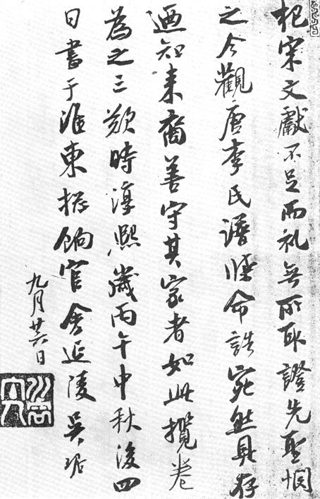 【赏析】: 吴琚书以肖似米芾书而闻名于世,属于所入者深而所出者少者。因而欣赏吴氏书作,不妨于其与米的异同上来作文章。 很显然,《观李氏谱牒》帖系得米书眞髓之作,这在吴氏传世书迹中也属无可置疑。而从具体形象来分析,其所以似米,首先在点画的顿挫浑厚、沉著痛快,及其造型的形神俱肖。其次则在结体的倾侧取势。因爲点画与字形都逼似,所以就完全可以乱米家之眞。但仔细推敲,仍可发现此帖与米书之异。这就是:其行笔不似米书的迅疾有力,“刷字”的味道已不那么浓,因而显得凝重温厚了许多;其结体不似米书的左歪右倒,“顚狂”的举止已收敛,因而显得平和醇静了不少。所以,吴琚此帖虽仍以沉著痛快、豪放纵肆爲主旋律,却已不是米书的猛厉奇伟与剑拔弩张,而是伴入了含蓄、轻松的节拍。如果说这裏仍有“剑”和“弩”的话,也已经是“半拔”、“半张”的了。当然,学宗一家而全然失却了自我,那是百分之百的书奴,而不是书家。吴琚宗米而犹能占有书家之一席,就在于他仍有一己风貌,尽管这种“一己风貌”似乎少了一些。 |
