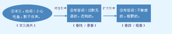 字源解说 鲁,甲骨文 = (鱼)+ (口,嘴巴),表示吃鱼。金文 承续甲骨文字形。有的金文 将“口” (吃)写成“甘” (品尝美味),表示专注品味有骨刺的鱼。在古人眼里,进食有骨刺的鱼是危险的,为了避免鱼骨刺喉,吃鱼时必须保持安静小心,不能说话。造字本义:小心吃鱼,默不作声。有的金文 误将“甘” 写成“白” 。篆文 承续金文字形 。隶书 将篆文的“白” 写成“曰” 。 附 文言版《説文解字》:魯,鈍詞也。从白,鮺省聲。《論語》曰:“參也魯。” 附 白话版《说文解字》:鲁,钝绌于言词表达。字形采用“白”作边旁,用省略式的“鮺”作声旁。《论语》上说:“曾参这人拙于言辞。” 引申线索
