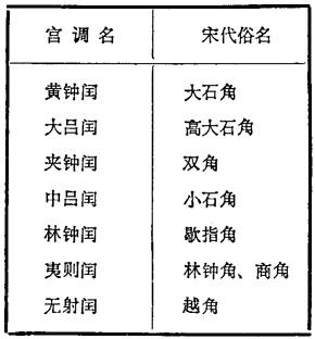 释义 | 角七调 唐宋燕乐二十八调四个调类名之一。 宋代角七调的官调名为闰,俗名称角,角七调各调的名称及其与俗名的对应关系如下表: 据南宋张炎《词源》载:“今雅俗祇行七宫十二调,而角不预焉。”角七调在宋词中已不用。参见〔燕乐二十八调〕条。 |