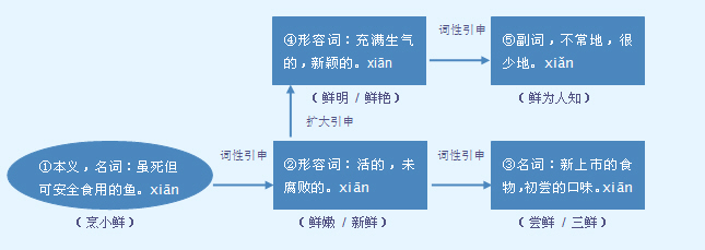 释义 | ![]() (鮮1—6*鱻) ❶ 刚杀的食用动物或采摘不久的植物,没有变质或经过腌制等: ~肉|~果|~虾。 陈 chén ~米|~酒|~谷子。 烂 làn ~菜皮|桃子~了。 腐 fǔ ~肉|流水不~。 ❷ 花或枝叶新鲜的: ~花|石榴花红得~艳可爱。 枯 kū 花瓣~了|~枝败叶|~木逢春。 字源解说 羊,既是声旁也是形旁,即“祥”,表示吉利的、平安的。鲜,金文 ![]() ![]() ![]() ![]() ![]() ![]() ![]() 附 文言版《説文解字》:鮮,魚名。出貉國。从魚,羴省聲。 附 白话版《说文解字》:鲜,一种鱼的名称。出产于貉国。字形采用“鱼”作边旁,用省略了两个“羊”的“羴”作声旁。 引申线索 ![]() 【字族索引】 鲜 【同音字】 xiān xiǎn |