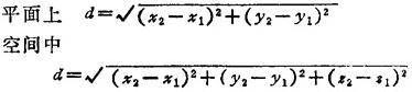 释义 | 解析几何中的基本计算 5.1.1 两点A1(x1,y1)、A2(x2,y2)〔空间为A1(x1,y1,z1),A2(x2y2,z2)〕间的距离公式 5.1.2 分线段为定比的分点坐标公式 线段A1A2,M为分割比例为 λ= λ>0称为内分,λ<0称为外分。 5.1.3 平面上三角形的面积公式 平面上A1(x1,y1)、A2(x2,y2)、A3(x3,y3)构成逆时针回路,则 |