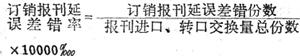 报刊在收订、要数、进口分发、投递过程中,发生延误差错的累计份数占报刊进口转口交换量总份数的比重。计算公式为: