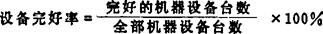 释义 | 设备完好率 反映企业生产设备技术状态的指标。是企业生产设备中的完好台数占全部生产设备台数的比率(一般只计算主要设备)。全部生产设备台数指在用、停用和修理的所有设备,但不包括由基建或物资部门代管的尚未投产的设备。设备完好率的高低,直接反映企业生产设备的维修保养状况。单项机器设备完好的标准包括:(1)性能良好,如动力设备的马力能达到原设计标准,加工设备的精度能满足工艺要求,运转无超温、越压现象;(2)零、部件齐全,没有比较大的缺陷,磨损、腐蚀程度不超过规定的标准,主要的仪器仪表和润滑系统正常,基本上没有漏油、漏电等现象。设备完好率的计算公式: |