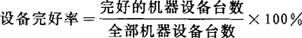 指完好的机器设备台数与全部机器设备台数的比率。它是考核设备管理工作好坏的重要指标,其计算公式如下: