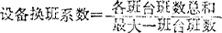 | 释义 | 设备换班系数 亦称“设备换班率”。 实行多班制的企业在一定时期内机器设备被利用的平均班数。其计算方法通常是将某种机器设备在一定时期内各班的台班数总和除以最大一班的台班数。 计算公式如下: