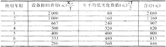 释义 | 设备最佳更新期 设备在经济上的最佳使用年限。 确定设备的经济寿命,即选择设备更新的最佳时期,是物资企业管理中一个十分重要的问题。选择设备最佳更新期的原则是:使设备的一次性投资和各年的维持费用总和达到最小。 其计算方法很多,常用的有设备低劣化数值法。简述如下:设备低劣化是指随著设备使用时间加长,有形损耗和无形损耗加剧,设备的维护、修理费用及燃料、动力等的消耗费用也要增加。假定设备低劣化每年以λ的数值增长,在设备使用年限(T)内,平均低劣化的数值应为λT/2;另一方面,设备在使用过程中,其价值发生转移,设K0代表设备的原始价值,T代表使用年限,则每年分摊的折旧费用为K0/T。现以y代表设备的年平均使用费用总和,则: y=λT/2+K0/T 若使y值最小,则取dy/dT=0得: 式中,Topt表示设备的经济寿命,即最佳使用年限。 举例:某设备原始价值为2000元,设备的维护修理费用、燃料、动力消耗费用等随设备使用期加长,每年以160元的速度增长时,则: 即设备的经济寿命为5年。上面的结果,也可用逐年计算的办法求得,见下表: 设备经济寿命的计算(考虑利息因素) 从表中可以看出,在设备使用的第五年,总费用最小,即第五年末为设备的最佳更新期。上列计算未考虑各年费用的利息因素,如考虑利息因素时,应作适当修正。 |