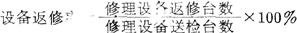 指修理设备返修台数与修理设备送检台数之比。
