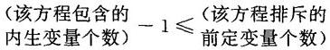 释义 | 识别的阶条件和秩条件 识别问题是针对联立方程系统中每一个随机方程而言,只有在统计上必须估计其参数的随机方程才有识别问题。 因为联立方程中只有统计形式惟一的方程,即可识别的通过各种方法得到的参数估计值才能确定是各方程中对应参数的。因此在对方程进行参数估计之前先要对方程的可识别性进行判断。 首先给定联立方程模型结构式: BY+ΓX=U 设n=该模型内生变量个数 m=该模型前定变量个数 ni=第i个结构方程所包含的内生变量个数 mi=第i个结构方程所包含的前定变量个数 ki=(n-ni)+(m-mi)=(n+m)-(ni+mi)=第i个结构方程排斥的内生变量和前定变量总数 第i个结构方程可识别的阶条件为: (内生变量个数)-1≤(该方程排斥的变量总数) 即 n-1≤ki 阶条件是识别的必要条件。 在结构参数矩阵(BΓ)内划掉第i行(第i个结构方程参数所在的行),同时划掉第i行上非零元素(包含在该方程内的变量的系数)所在列,剩下的元素按原次序所组成的矩阵记为A,显然A是n-1行ki列的矩阵。 第i个结构方程可识别的秩条件为: rank(A)=n-1 识别的秩条件是识别的充分必要条件。 下面利用简化式给出识别的阶条件与秩条件的另一种等价形式。设上面的联立方程模型结构式所对应的简化式为: Y=ΠX+v,其中Π=-B-1Γ,v=B-1U 则上面结构式模型中第i个结构方程可识别的阶条件为: 即 ni-1≤m-mi 在简化式参数矩阵内划掉第i个结构方程所排斥的内生变量对应的行和所包含的前定变量对应的列,剩下的元素按原次序所组成的矩阵记为D。 第i个结构方程可识别的秩条件为: rank(D)=ni-1 |