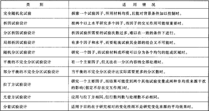 释义 | 试验设计 在预先“设计”好的某种条件下进行有计划的试验,从而能够迅速、经济、有效地获得预测某种现象的统计资料,并通过分析试验结果,从中归纳出具有普遍性和可重复性规律的一种数理统计工具,也称为正交设计或实验设计。 该方法起源于英国19世纪为农田选择“最佳肥料”进行的试验。试验的目的是为了获得对条件与结果之间规律性的认识。 通过试验设计可以最大限度地节约成本,缩短试验周期,同时又能迅速获得明确可靠的结论。试验设计所要解决的问题是多因素条件的试验。这种方法也适合于解决多因素、多指标优选的问题。当一些指标之间互相矛盾时,应用试验设计法可以了解因素与指标之间的规律性,兼顾各指标找出最合适的生产条件。 试验设计的种类很多,分别适用于不同情况,如下表9-3所示。 表9-3 试验设计的类别及用途 试验方案的制定要确定以下一些因素:(1)因子,即试验中所要研究的对象(生产条件或质量特性),各个因子可以是定量的,也可以是定性的;(2)水平,即试验中所要考察的某个因子的衡量值;(3)处理,即在一次试验中指定给某个因子的水平;(4)试验材料,即处理所应用的物质实体;(5)试验环境,即在已知或未知情况下影响试验结果的周围环境条件;(6)分区,即试验材料或试验环境的一个相对均质的部分;(7)计划分组或列出分区,即在进行试验设计时,利用分区内一致性将不必要的变量影响减到最小程度,而将所要研究的变量影响提高到显著地位的设计;(8)随机化,即以纯粹的“随机方式”分配样组,以使不可控变量的影响相互抵消,同时提高试验误差估计值的有效性,以便有条件应用显著性检验和确立置信区间;(9)重复,即重新进行某项观察或测量,以提高精密度。 试验设计的实施过程为:明确试验目的;收集、整理、研究与本试验有关的信息;决定所提出的因子及其水平;制定试验方案;进行试验;分析试验数据并得出统计结论;就试验结论与有关人员充分讨论、研究,决定今后的工作方针。 |