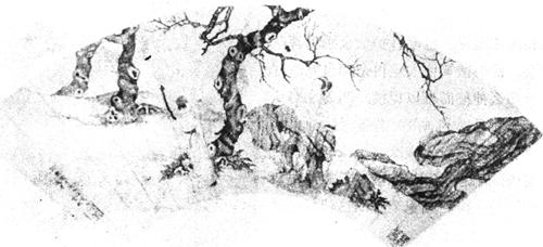 【作品赏析】: 这是一件仕女人物画小品,描绘了古代上层妇女闲散适意的游乐活动。 画家选择了具有典型意义的生活片断,通过人物活动及特定情境中的神情意态,揭示了人物的社会身份和精神状貌,寄托了对封建社会中年轻妇女那种空虚凄寂生活的同情感叹。 画面配景是情趣幽适的小园,湖石绉瘦,苍苔缀地,杏花吐艳,冉冉春意之中蕴含著凄清和冷落。 一位神情倦怠的少妇正在调弄著树枝上的鹦鹉,手中握著箜篌的使女侍立在一旁。 庭院幽深,衣饰华丽,显然是仕宦之家、豪富之门,所选择的“调鹦”情节,揭示了主人公生活的百无聊赖;侍女手中的箜篌,告诉人们主人公是一位有音乐素养的女子,然而此时此地却为不可名状的烦恼所困扰,无意去弹奏她心爱的乐器,只得以调逗不解人意的鹦鹉米消愁解闷、打发时光,连满园的春色也无心赏玩。 画家用含蓄、曲折的手法,委婉地表现出人物的心理状态和性格特征,达到“传其神”、“写其心”的惟妙惟肖、情浓意深的艺术境地。 画面虽小,但细腻生动。 人物形象娴婉贞静,且眉目传情、动态自然,无矫揉造作之弊。笔墨细秀清隽,设色洁净妍雅。 配景亦十分讲究,精整密致又不失潇洒流利。 堪称传统仕女画中的优秀作品。。  明 丁云鹏 扇面 设色 藏上海博物馆 |