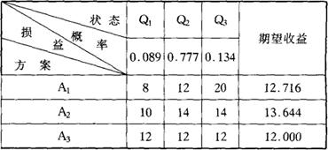 释义 | 贝叶斯决策分析法 设法获得并修正自然状态的概率分布,从而计算各决策方案的期望损益,并选择期望收益最大的方案的决策分析方法。 决策的重要依据在于对未来的了解,也就是各种自然状态发生的概率。决策者在决策时或多或少总能得到自然状态的概率分布。根据概率分布性质的不同,有以下两种情况的决策: 无信息的贝叶斯方法 当自然状态的概率分布是从以前的经验或直观判断得到的(即先验概率),则决策方法为无信息的贝叶斯方法。 其过程多要借助决策损益表(参见“风险型决策分析法”)。 例:某公司决定生产一种新产品。生产方式有:A1大批量,A2中批量和A3小批量三种。 市场状态在Q1销路好,Q2销路一般和Q3销路较差。设市场三种可能状态的先验概率分布为1/2、1/3、1/6,见表11-25,求最优决策。 表11-25 单位:万元 从表中可以看出A2的期望收益最大,故挑选A2作为最优方案。 从以上例子可以看出,在无信息的条件下的贝叶斯决策与一般的期望值概率决策是相同的。 有信息的贝叶斯方法 根据已获得的信息,决策者可以改进其决策过程。有信息的贝叶斯决策方法是先获得随机变量x为某一定值时自然状态的后验分布,然后再用该分布计算各方案的期望收益。 后验概率hQ(Qj|X=x)的计算公式为: 式中:PQ(Qj),PQ(Qk)——Q在为Qj或Qk时的先验分布;Px(X|Q=Qj)——已知Q=Qj时x的分布条件。 例:在工厂大修即将来临之时,设备科决定应贮存大量(A1),中等数量(A2),少量(A3)的某仪表。 假设由过去的数据可知每年大修时该仪表的需要量Q服从正态分布,平均值为5(Q1),10(Q2)和15(Q3)单位,其概率分别为0.2、0.5、0.3,方差为10,且已知各方案在各状态的收益,求最优方案。 解:根据往年的大修情况,估计今年仪表需要量为10单位。据此先求出后验分布: 将Qj=5、10、15分别代入,可得: 此时决策损益表如表11-26: 表11-26 单位:万元 由此可以看出应取A2为最优方案。从这个例子可以看出贝叶斯决策的关键就在于利用已知信息对先验概率加以调整,使之更现实。 |