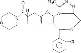 | 释义 | 贝帕泛 C23H22ClN5O2S=467.97 CAS-114776-28-2 4-[[6-(邻-氯苯基)-8,9-二氢-1-甲基-4H,7H-环戊二烯并[4,5]噻嗯并[3,2-f]-均-三唑并[4,3-a][1,4]二氮杂 4-[[6-(o-Chlorophenyl)-8,9-dihydro-1-methyl-4H,7H-cyclopenta[4,5]thieno[3,2-f]-s-triazolo[4,3-a][1,4]diazepin-8-yl]carbonyl]morpholine. 抗凝血药。 Bepafant. INN,USAN.