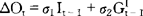 (1)式是关于国民净支出(=国民收入)的确定式。(2)式是消费函数,与短期模型相比,少了常数项。因为比较理想的长期消费和可支配收入关系是通过原点的直线(Duesenberry,1949)。 在(3)式和(4)式中,税收收入(T,等于从税收总额中扣除转移支付后的净额,因为这里转移支付被看作是负的税收)和购买商品与劳务的政府支出(G),分别表示为Y的一定比率,在一般情况下,0<t<1,0<g<1。 (5)式表明的是这样一种条件:政府投资GI在政府对商品和劳务的购买支出总额中占有一定比例;假定0<K<1。 (6)式表示的是,在长期分析中,投资的生产力效应非常重要。西方经济学家把σ1和σ2称为“产出系数”,分别表示由一单位的民间净投资和政府净投资所产生的产出能力增加额。 (6)式的经济意义是:t时期的生产能力增加额(△Ot=Ot-Ot-1)等于在(t-1)时期的民间投资和政府投资乘以各自的产出系数后的相加之和。当然,投资的生产能力效应也有可能会因劳动供给问题而受到影响。 2.财政政策对充分就业增长率的影响 充分就业增长率 上述模型可归纳为下列三个方程式: It=[1-c(1-t)-g]Yt (7)