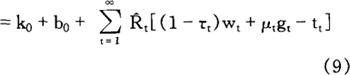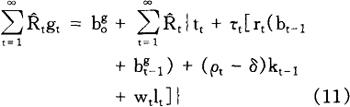 根据(10),我们得到政府的跨时预算约束式: