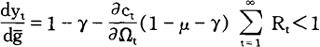 此式表明,政府的商品和服务购买现值等于初始债务持有加上一次总付税和所得税收入的现值。 如果证实随著债券收益率进行适当调整,商品和债券市场的均衡就会连续存在,则整个模型就算建成了。 市场清卖(market claring)条件是: ct+it+gt=yt (12)