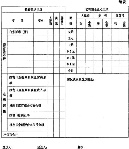 释义 | 货币资金的主要凭证及其传递程序 1.现金盘点表 企业应定期组织库存现金的盘点,通常包括对已收到但未存入银行的现金、零用金、找换金等的盘点。盘点库存现金的步骤和方法有: (1)在进行现金盘点前,应由出纳员将现金集中起来存入保险柜。必要时可加以封存,然后由出纳员把已办妥现金收付手续的收付款凭证登入现金日记账,如企业现金存放部门有两处或两处以上者,应同时进行盘点; (2)由出纳员根据现金日记账进行加计累计数额结出现金结余额。 (3)盘点保险柜的现金实存数,同时编制“库存现金盘点表”,分币种面值列示盘点金额; (4)资产负债表日后进行盘点时,应调整至资产负债表日的金额; (5)盘点金额与现金日记账余额进行核对,如有差异,应查明原因,并作出记录或适当调整。 若有冲抵库存现金的借条、未提现支票、未作报销的原始凭证,应将“库存现金盘点表”中注明或作出必要的调整。 2.银行对账单 银行对账单为各开户银行于月底寄送的表明企业该银行账户存款和取款明细资料的文件,是企业进行银行账簿核对的有效支持性文件。企业应将银行对账单的余额与企业银行账簿的金额进行核对,编制银行存款余额调节表。 表4-11 库存现金盘点表 3.银行存款余额调节表 企业应于每月月末根据银行对账单和企业银行账簿编制银行存款余额调节表,银行存款余额调节表的格式如表3-12所示: 表4-12 银行存款余额调节表 |